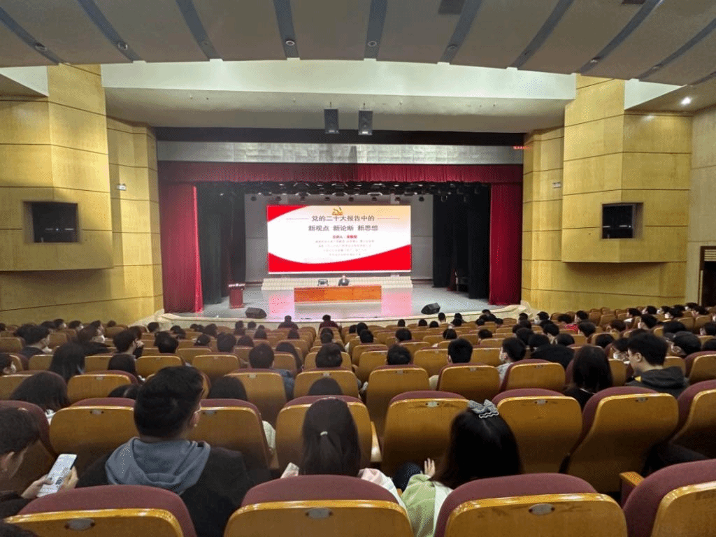 全体师生党员330余人在学生活动中心报告厅同上新学期第一堂党课。湖南省高校学习宣传党的二十大精神师生巡讲团成员,湖南科技大学二级教授吴毅君讲授“党的二十大报告中的新观点新论断新思想”主题党课。