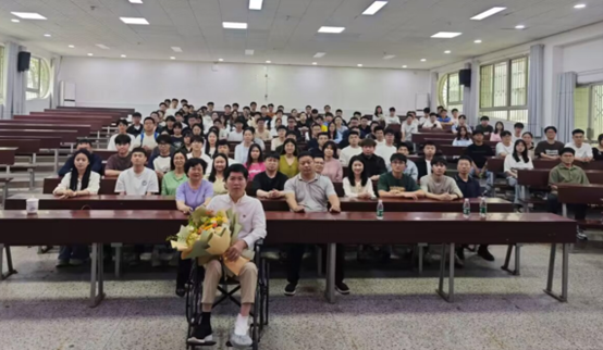 党课在热烈的掌声中结束。刘期达老师坚韧不拔的意志和乐观豁达的精神令在场人员深感敬佩。课后有80多人关注了刘老师的微信公众号,表示受到很大的鼓舞。