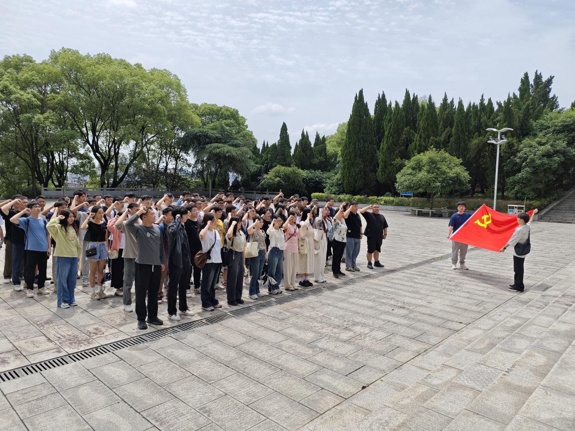 接着,党员同志们前往醴陵市烈士陵园进行瞻仰。作为湘东地区的一个重要红色教育基地,这里承载着光荣的革命历史,已知的醴陵籍革命烈士人数超过4000位,他们为中国革命事业立下了不朽的功绩。站在左权将军的烈士纪念碑前,全体党员肃然起敬,鞠躬默哀,以表达对革命先烈崇高精神的深切缅怀。在这一庄严而神圣的时刻,毕业生党员们重温入党誓词,展现了他们坚守初心、勇往直前的坚定意志。