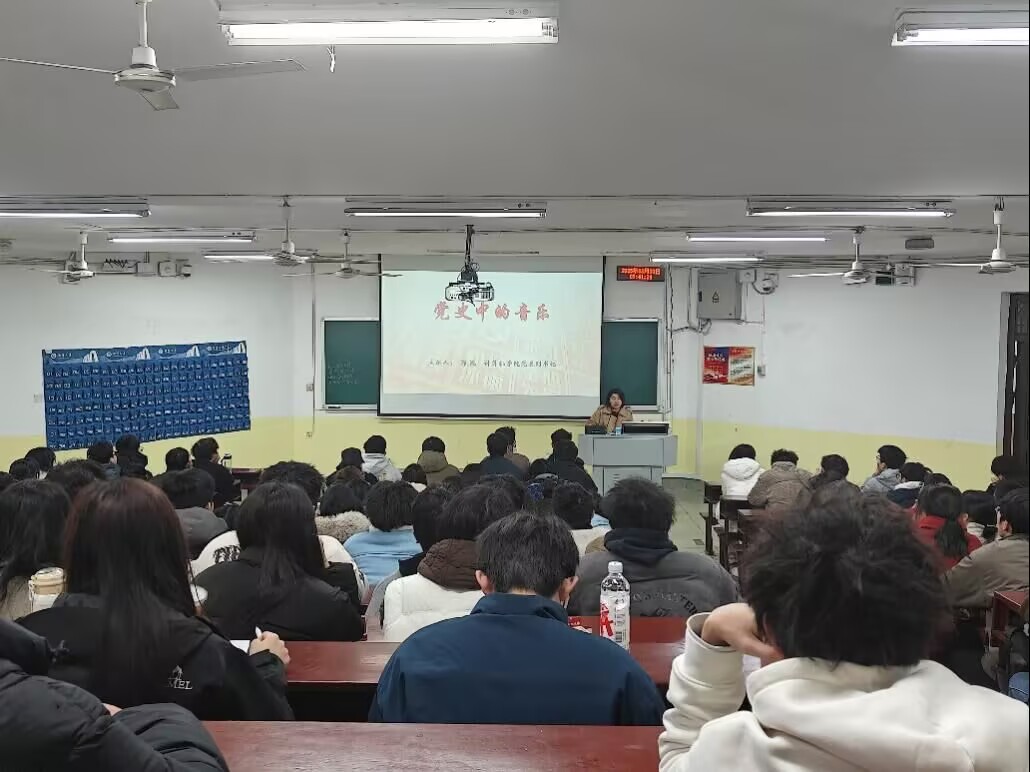 党委副书记郭滟老师主讲。讲座通过音乐与党史的结合,带领同学们回顾中国共产党百年来的光辉历程,感受音乐在革命与建设中的独特力量,为2025年第1期入党积极分子带来了一场跨越百年的红色旋律之旅。