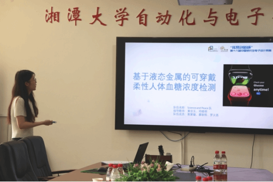 竞赛现场紧张有序,参赛选手通过PPT展示作品的创新性、产品特色、实际应用等,并对评委的问题进行现场作答。