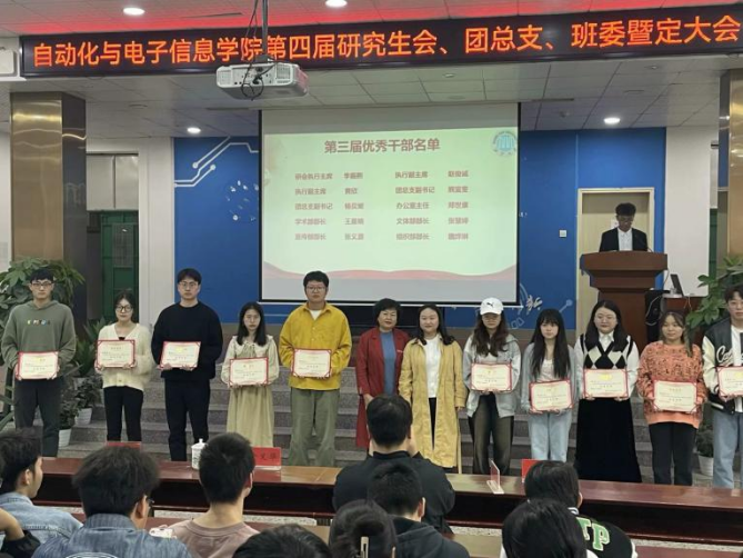 第四届研究生会、研究生团总支换届大会及2023级班委暨定大会在工科楼阶梯教室如期举行。院党委书记金义华老师、院研究生辅导员刘燕老师、吴政宏老师作为本次大会的嘉宾,参加本次活动的还有自动化与电子信息啪啪啦