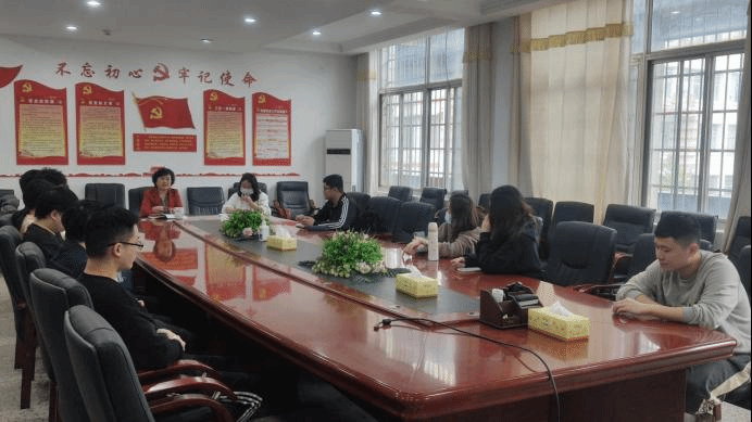 党委书记金义华主持,研究生思政干事刘燕老师与2019级待落实就业单位的20余名研究生参加。