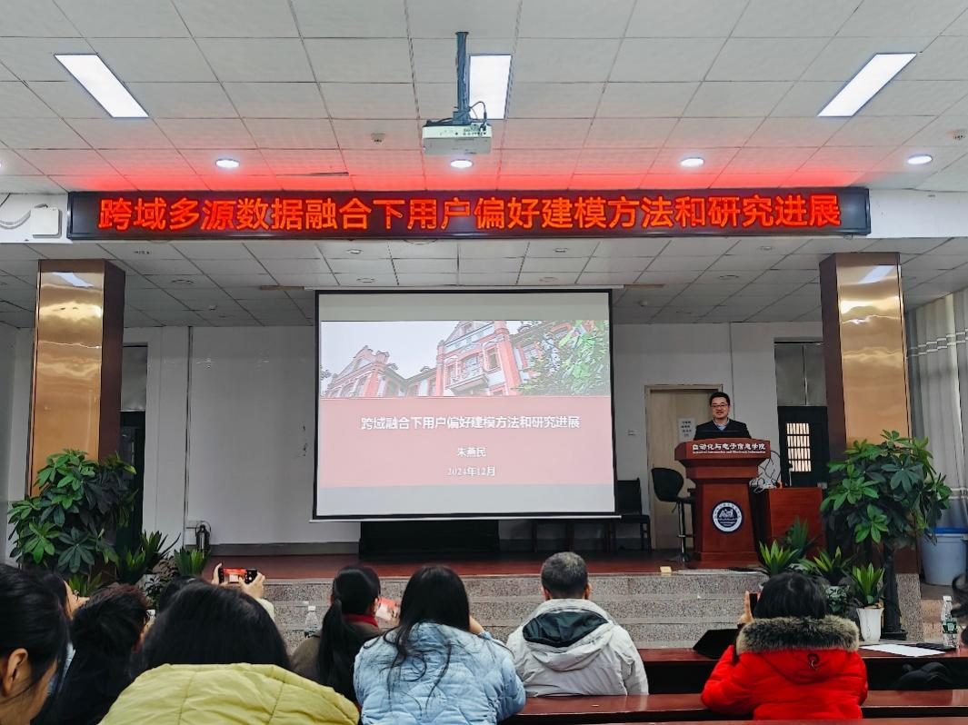 在工科楼阶梯教室开展以“跨域多源数据融合下用户偏好建模方法和研究进展”为主题的讲座。本次讲座邀请上海交通大学的朱燕民教授为主讲嘉宾,自动化与电子信息啪啪啦