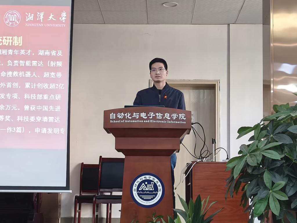 随后,贺玉贵老师带来了以“立体全方位穿墙雷达关键技术及系统研制”为主题的精彩报告。他以“立体全方位穿墙雷达关键技术”作为切入点,分享了其团队在超宽带雷达领域取得的突破性进展。他主导研发的无人机载穿墙雷达、便携式三维穿墙雷达等装备,填补了行业的空白,为相关领域的技术发展带来了新的变革。与此同时,所在团队积极投身国家重点科研项目,先后承担国家科技支撑计划、国防科技创新特区等10余项重大课题,获中国先进技术转化应用大赛银奖等多项荣誉。他提出“技术研发需立足国家战略需求”,激励青年学子投身关键核心技术攻关,勇攀高峰,为国家科技进步贡献力量。