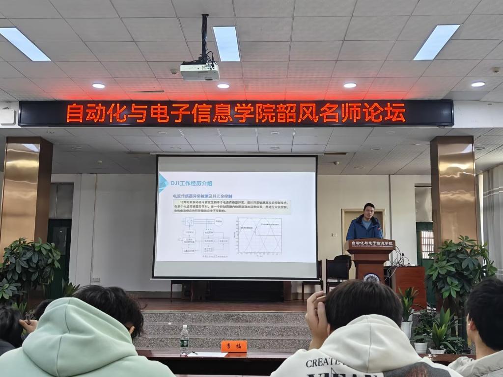 讲座伊始,李福老师作主题为“论优秀工程师的自我修养”的报告。以“永磁同步电机的高性能驱动技术”为主线,结合自身科研与工业界经历,深入剖析了电机控制领域的关键挑战,同时分享了该领域取得的创新成果。作为深圳市大疆创新科技有限公司前电机控制算法工程师,他主导了多款行业级无人机动力电机的无位置传感器控制算法开发,相关技术已成功应用于农业巡检、安防等领域。任教后,他主持了国家及省级科研项目,致力于提升永磁电机动态性能与可靠性,其成果为工业驱动系统优化提供了重要理论支撑。