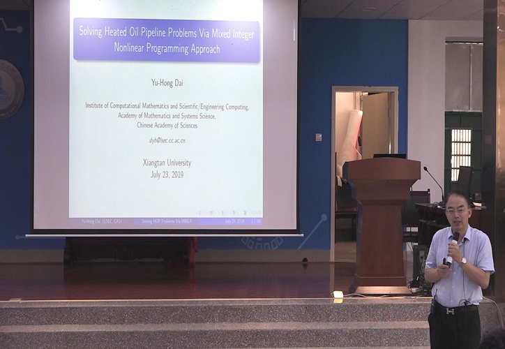 数学与系统科学研究院研究员戴彧虹作了题为“Solving Heated Oil Pipeline Problems Via Mixed Integer Nonlinear Programming Approach”的学术报告。