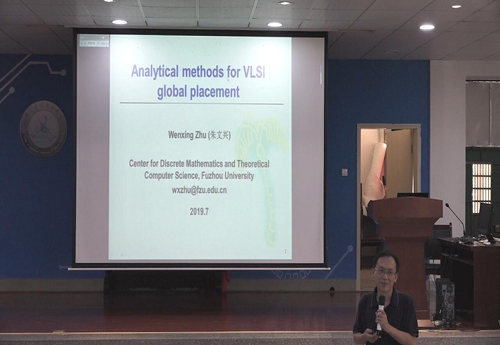 福州大学离散数学与理论计算机科学研究中心朱文兴教授以“analytical methods for VLSI global placement”为题,介绍超大规模集成电路布局问题的优化模型以及相关求解算法的主要进展。