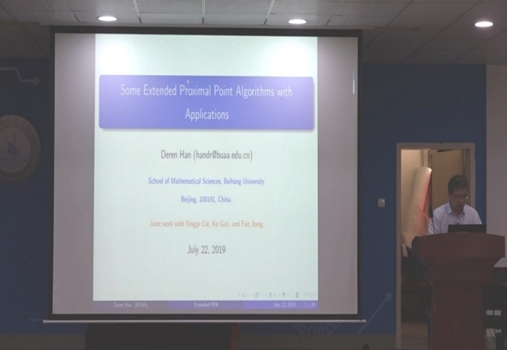 韩德仁教授作了题为《Some Extended Proximal Point Algorithms with Applications》的学术报告。