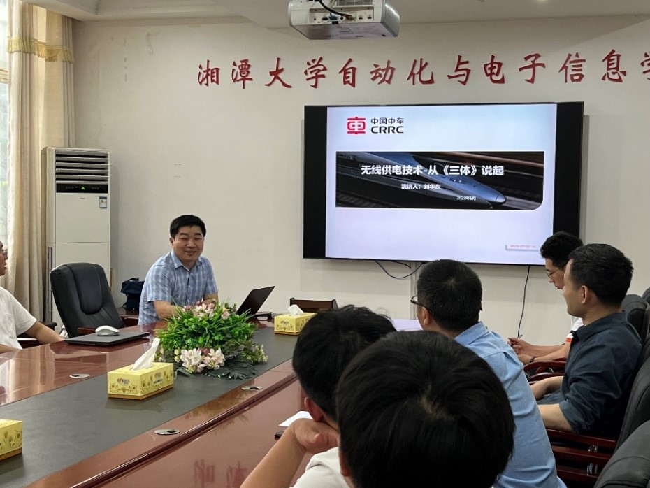 2022年5月8日下午3点,中车株洲电力机车研究所有限公司主任设计师、教授级高级工程师刘华东受邀莅临啪啪啦开展学术交流,并做了题为“无线供电技术--从《三体》说起”的精彩学术报告。报告会在工科楼N201会议室举行,由自动化与电子信息啪啪啦