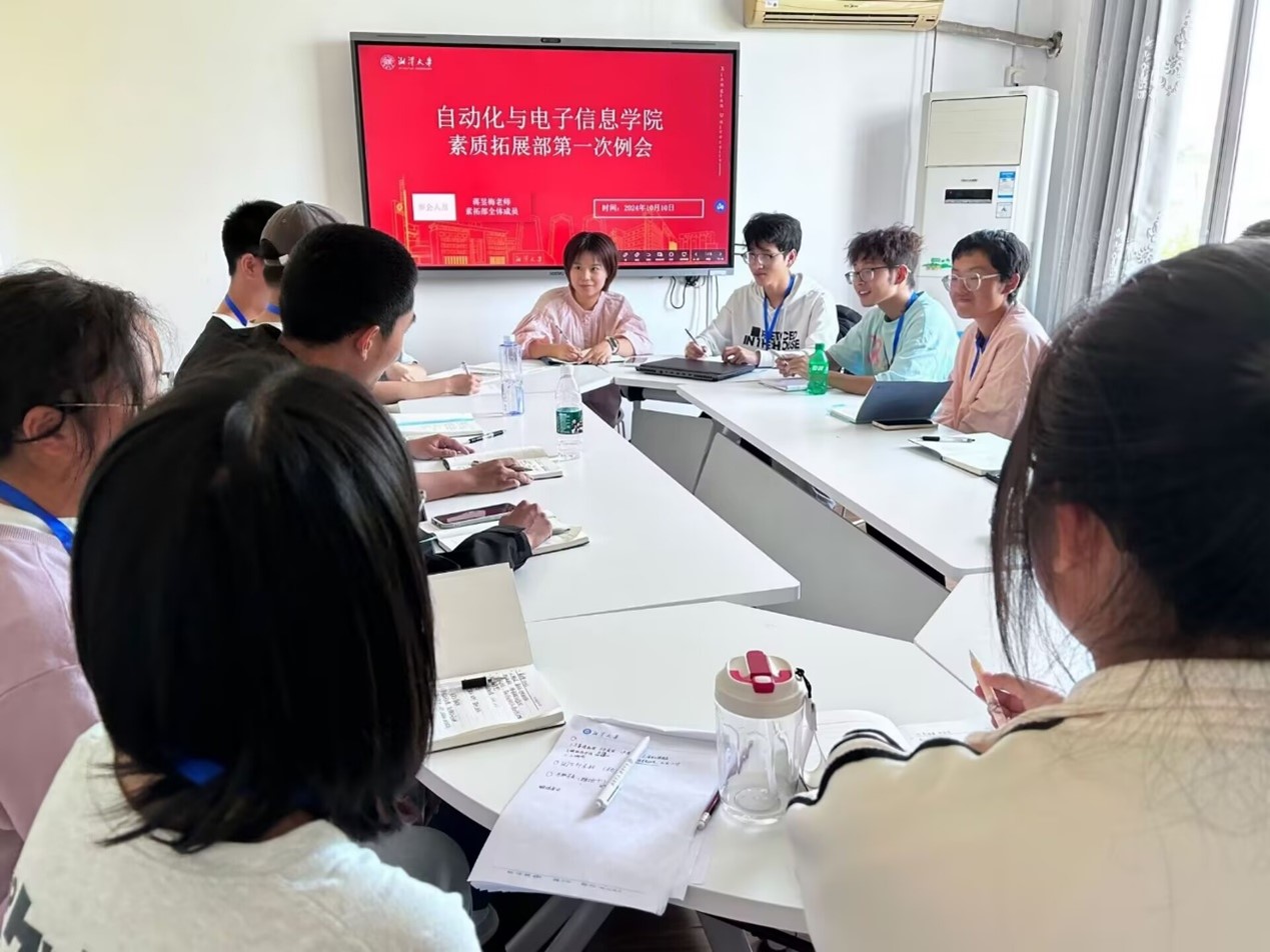 素质拓展部(后文简称素拓部)召开了第一次例会,对后续的心理报表收集与素质拓展活动等工作进行了人员部署与指导。蒋昱梅老师主持会议并动员讲话,素拓部全体成员出席会议。