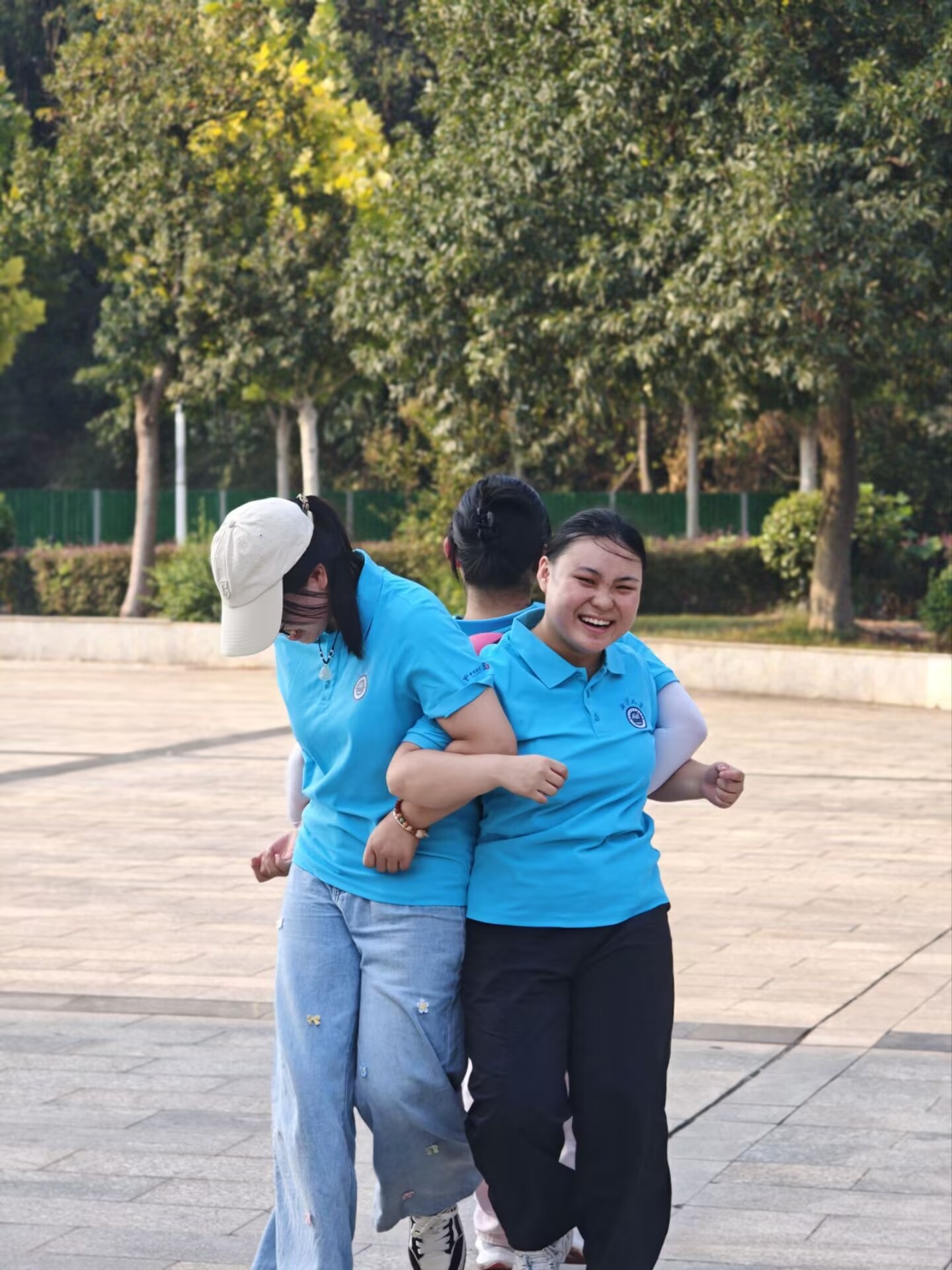 “10·10”世界精神卫生日系列活动的重头戏,本次素质拓展精心设置了“齐心协力”“手足相连”“纸杯传水”“背夹气球”等一系列兼具趣味性与挑战性的团队项目。这些活动不仅是体能的较量,更是智慧与协作的考验。在“盲人接力”项目中,队员们戴上眼罩,在黑暗中完全依靠队友清晰、准确的指令前行,深刻实践了信任与沟通的团队精神。而在“齐心协力”项目中,全体队员需步伐统一、节奏一致,任何一人的失误都可能导致前功尽弃,极大地培养了队员间的默契和集体责任感。