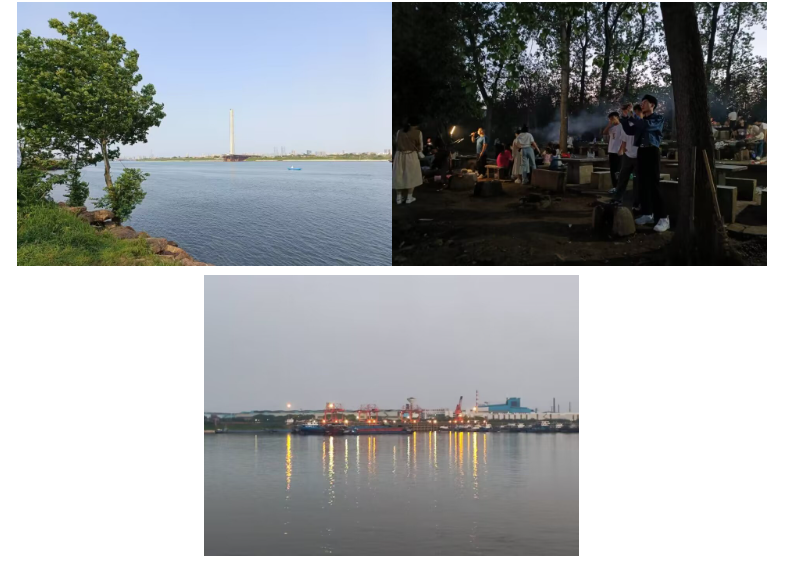 在湘江河畔,大家呼吸着新鲜的空气,领略大自然的风光。