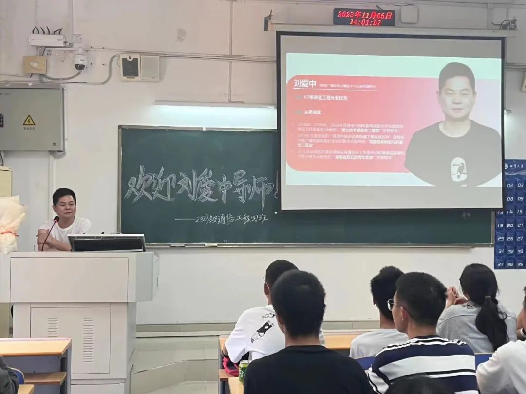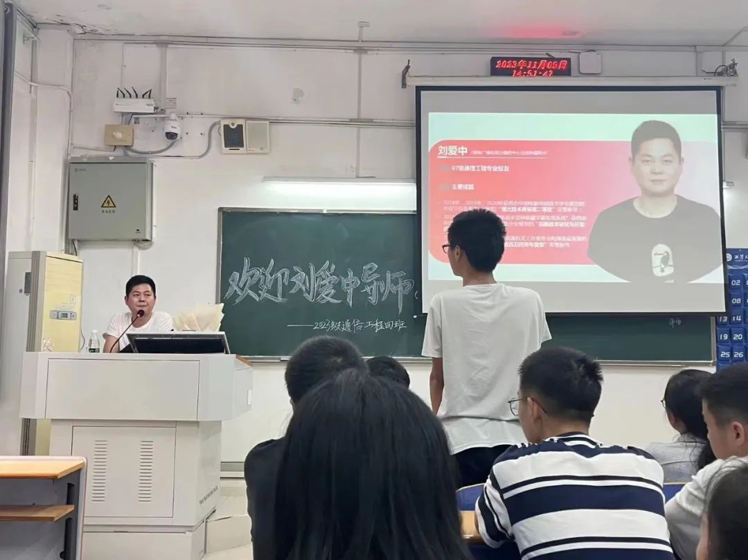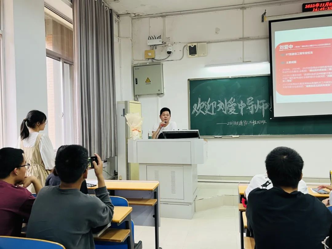 自电院07级通信工程院友刘爱中受邀作为企业导师对通信工程四班进行了指导。这次见面会旨在让同学们对于大学学习和职业规划有更好的认识。参加此次会议的有通信工程四班班主任蒋昱梅,养辅杨四海和通信四班全体同学。