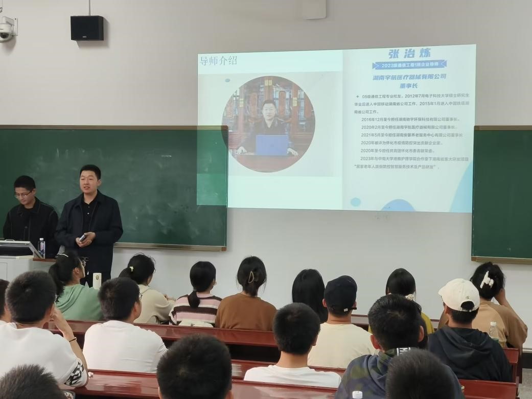 在研究生报告厅举行了2023级企业导师聘任仪式,确定并聘任了我校通信工程专业05级校友、湖南宇航医疗器械有限公司董事长张治炼为23级通信工程1班的企业导师。