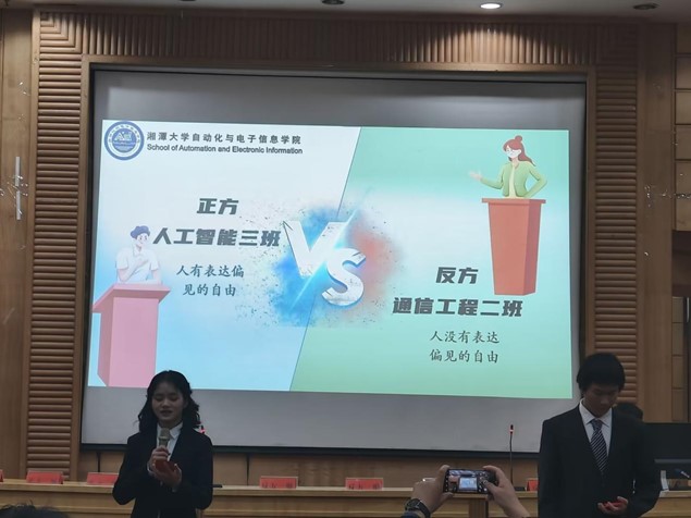 第四届“星升杯”辩论赛在图书馆报告厅迎来收官之战,辩论主题是“人有没有表达偏见的自由”。本次决赛由通信工程二班(反方)对战人工智能三班(正方)。