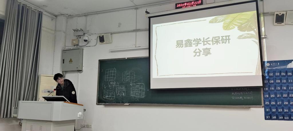 会上,易鑫学长首先分享了他的保研经验。他详细介绍了保研的流程和注意事项,包括如何准备保研材料、如何选择保研学校、如何与导师沟通等。易鑫学长还重点强调了学术成果和综合素质在保研中的重要性,并鼓励大家积极参与科研项目和社会实践,提升自己的竞争力。(图:易鑫学长肖像图(图片来源:自电e站 榜样力量第二期) 图:易鑫学长分享过程图)
