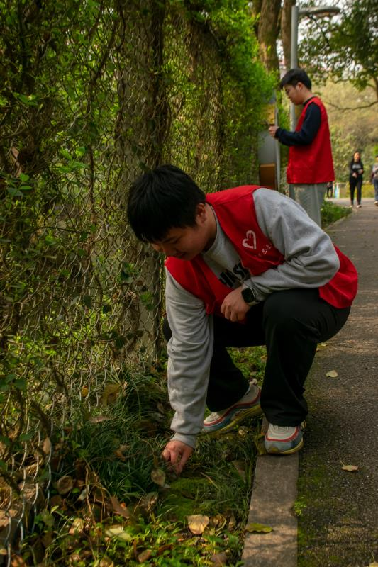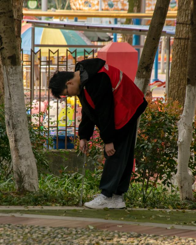活动伊始,自动化二班的全体同学在公园大门集合,整齐划一,精神饱满。在班干部的精心组织和带领下,同学们手持扫把、钳子、垃圾袋等工具,迅速投入到紧张的清扫工作中。他们两三人一组,分工合作,对公园周边区域进行了全面而细致的清理。