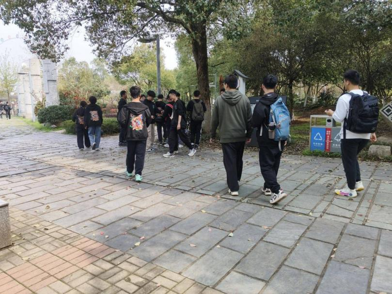 活动当天,同学们早早来到了白石公园门口集合,在班委的组织下,大家领了垃圾袋自发地投入到清理公园垃圾的行动中。