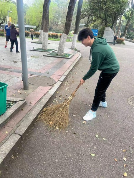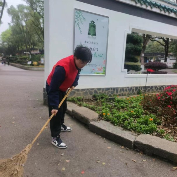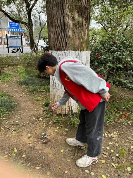 活动中,同学们身穿红马甲,化身为“环保小卫士”,认真打扫着公园的各个角落,对花坛草丛等重点区域进行了集中清理。他们还对过往行人进行了文明劝导,呼吁大家养成良好的行为习惯,共同维护干净整洁的生活环境。