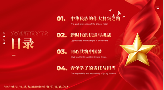 在团课的最后阶段,熊玲琳对此次团课进行了总结,并带领同学们共同喊出了“做中国梦的信仰者,做中国梦的实践者,做中国梦的奋斗者,做中国梦的推动者”的口号。这一口号不仅表达了同学们对实现中国梦的坚定信念,更展现了他们为实现这一伟大目标而努力奋斗的决心。