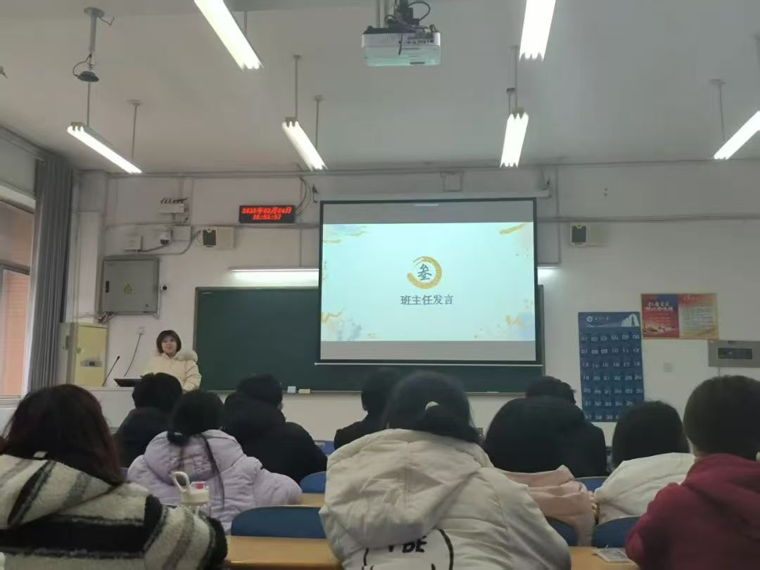 在班级建设方面,蒋老师充分肯定班委工作的全面性与务实性,同时提出更高要求,提高班级的美誉度与知名度。班级荣誉属于每个人,需群策群力、携手并进。围绕安全与生活,蒋老师叮嘱同学们注意交通出行、宿舍用电及健康防护。最后,她以“亦师亦友”的姿态发出倡议,鼓励同学们在学业规划、人际交往、职业发展等方面与班主任、专业课教师多沟通,“把握机会、奋起直追,2025年一切皆有可能”。