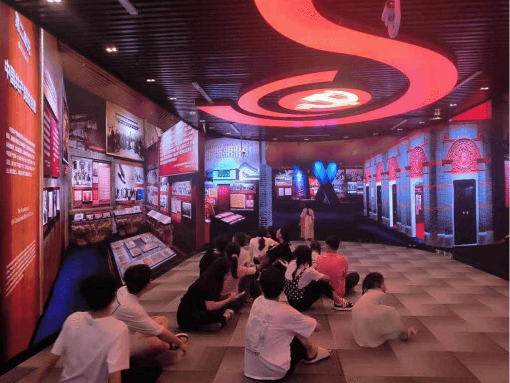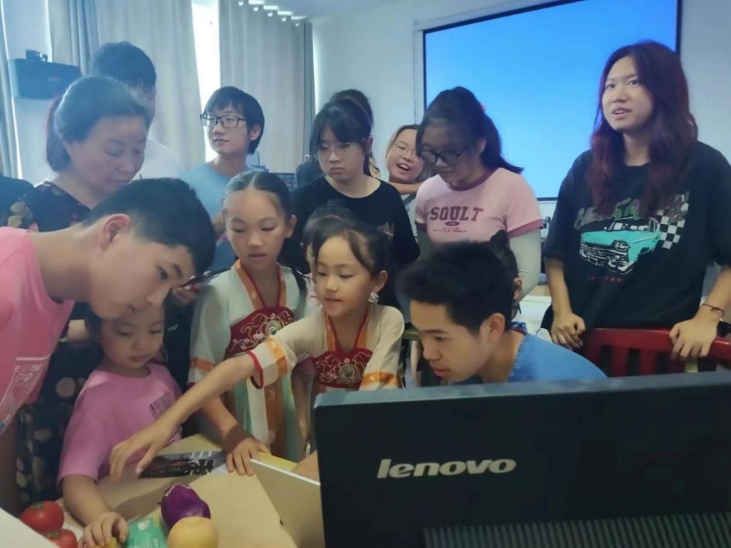 的思政体验室,在那里大家感受到了全新的展示方式——3D放映,小朋友们戴上3D眼镜,在不断变化的虚拟空间中,深切地感受红色文化,即新颖又有趣。之后,大学生志愿者们又与小朋友们开展了深入互动的素拓和游戏,其中人体拷贝、成语接龙等游戏在启发小朋友们思考的同时又让他们感受到了此次活动的乐趣。最后,大学生志愿者们为小朋友们送上了礼物和联系方式,圆满结束了此次活动。