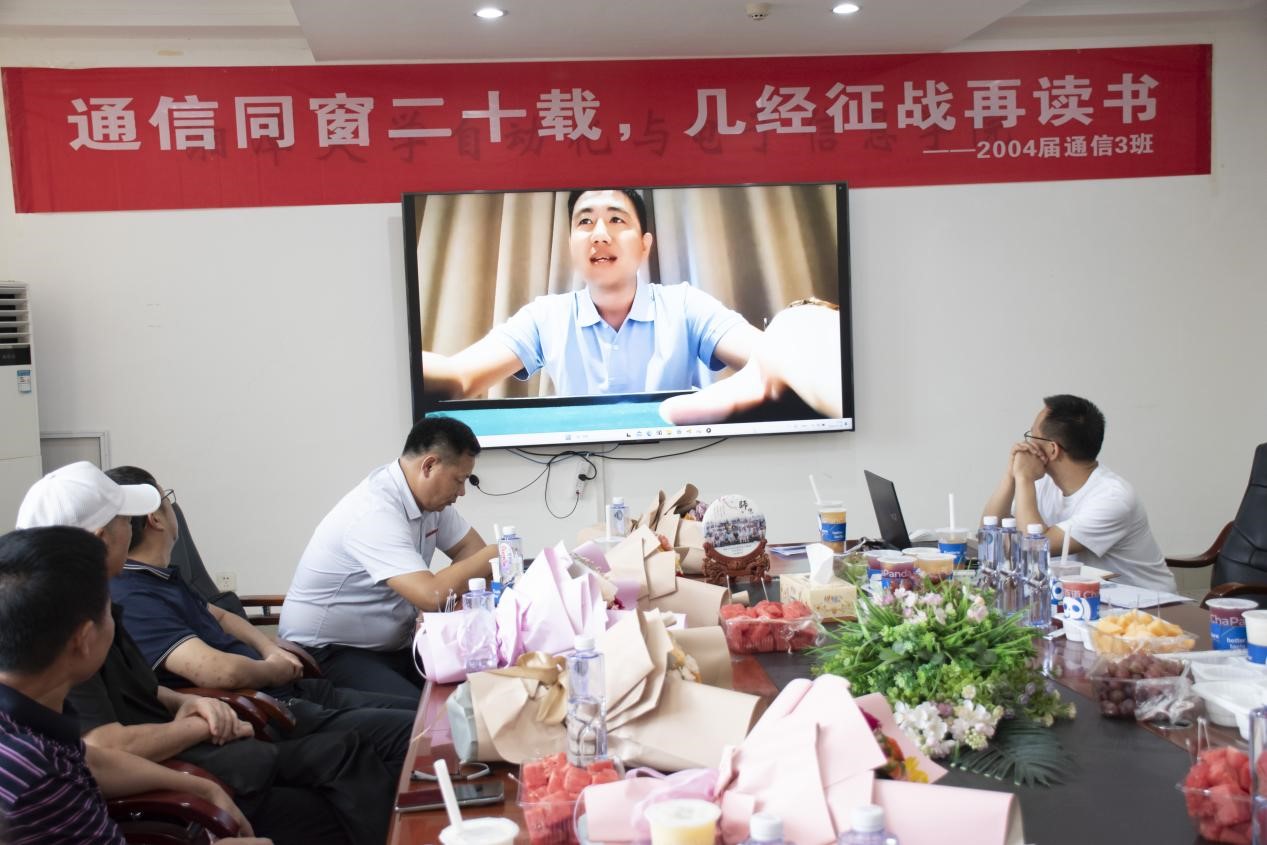 庆典活动以“通信同窗二十载,几经征战再读书”为主题,由班长陈少丰激情主持,通信系的7位老师受邀出席了此次班会。班会一开始,在一片温馨和谐的氛围中,同学们向老师们献花并赠送礼物,表达了对师恩的感激和对教育事业的尊重。这些小小的心意,承载着同学们对老师们深深的敬意和感激之情。