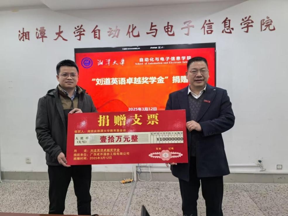 捐赠10万元,设立“刘道英语卓越奖学金”,助推母校教育事业发展。校友刘道、自动化与电子信息啪啪啦