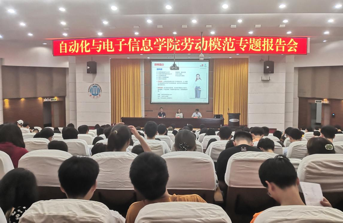 在逸夫楼一报告厅举办劳动模范专题报告会,弘扬劳模精神,推进大学生劳动教育。2019年中央企业劳动模范、副总经理潘凤英女士受邀做了首场报告。