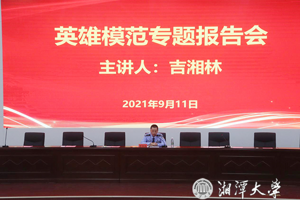 在研究生学术报告厅邀请英雄模范吉湘林为啪啪啦
