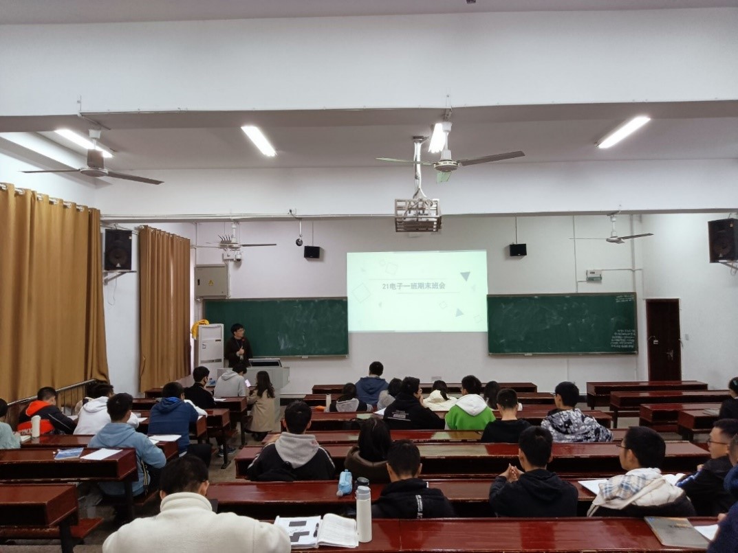 在期末考试动员班会上,班主任、养成辅导员针对期末考试的复习策略、方式方法做了详细的解答。2021级电子信息工程一班班主任印峰老师强调作为学生的首要任务是学习,工科学习讲究方式方法。养辅宋贻立从时间、地点、策略上分享了他的备考经验,第一是要根据科目合理安排时间;第二是尽量选择在图书馆、自习室进行学习;第三是学会归纳总结。辅导员程琳宇老师要求同学们在努力学习的同时也要注意调整心态,劳逸结合,并就诚信考试,严格考试纪律做了重点强调。