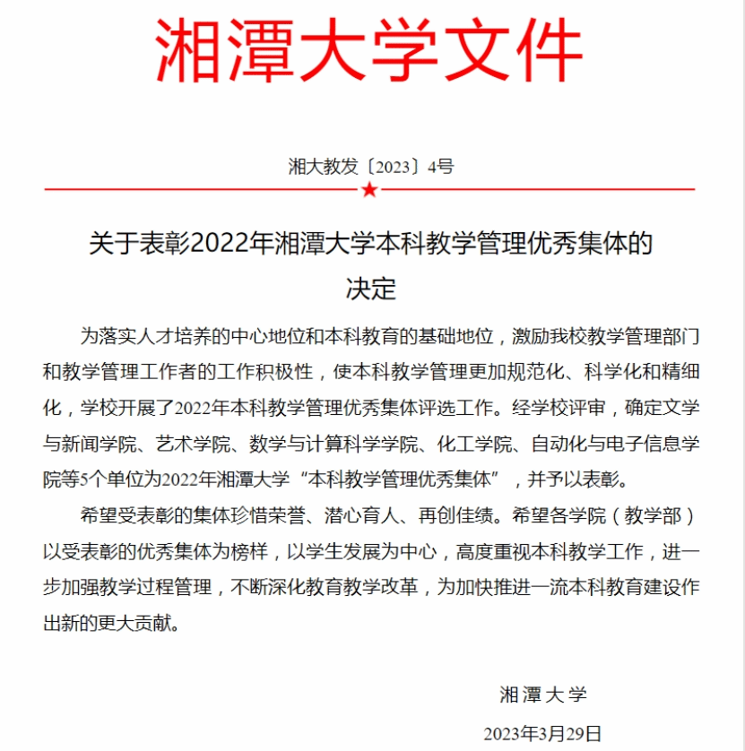 本科教学管理优秀集体的决定》(湘大教发〔2023〕4号),啪啪啦获批2022年啪啪啦