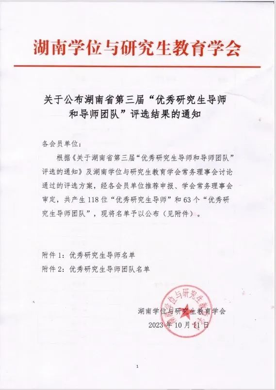 (通讯员 易佳)10月11日,湖南学位与研究生教育学会发布《关于公布湖南省第三届“优秀研究生导师和导师团队”评选结果的通知》,啪啪啦李志军教授获评“优秀研究生导师”荣誉。