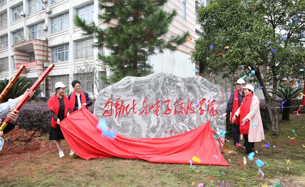 领导以及院友代表一起为院名石揭幕,并合影留念。