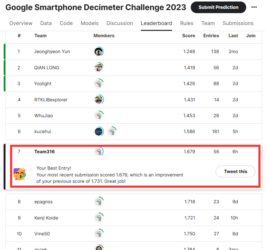 本届国际挑战赛于2023年9月13日在美国第36届导航学术年会 (ION GNSS+ 2023,领域顶会)上宣布启动,大赛致力于激发智能手机 GNSS 定位精度方面的创新研究,以提高智能手机在人们日常生活中的导航定位能力。截至目前,吸引了来自有中国武汉大学、东南大学、德国慕尼黑工业大学、日本索尼公司、美国、加拿大、英国等知名高校与企业全球127支优秀队伍参赛。