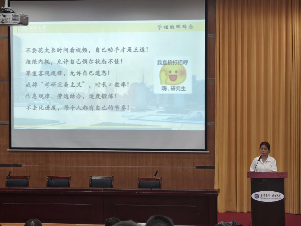 团委书记文林波、辅导员熊峰、2020级优秀毕业生代表、及2021级全体学生参加。本次分享会分为“就业指导分享”和“考研经验分享”两部分进行。