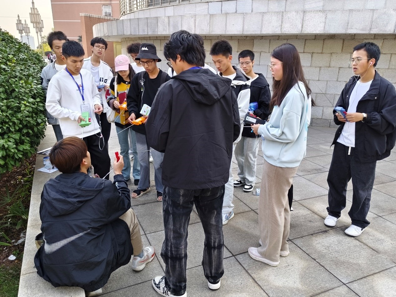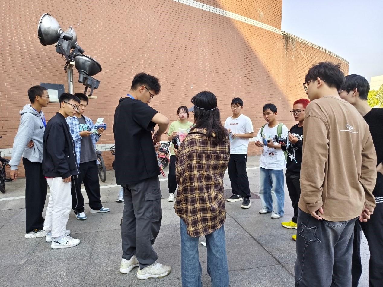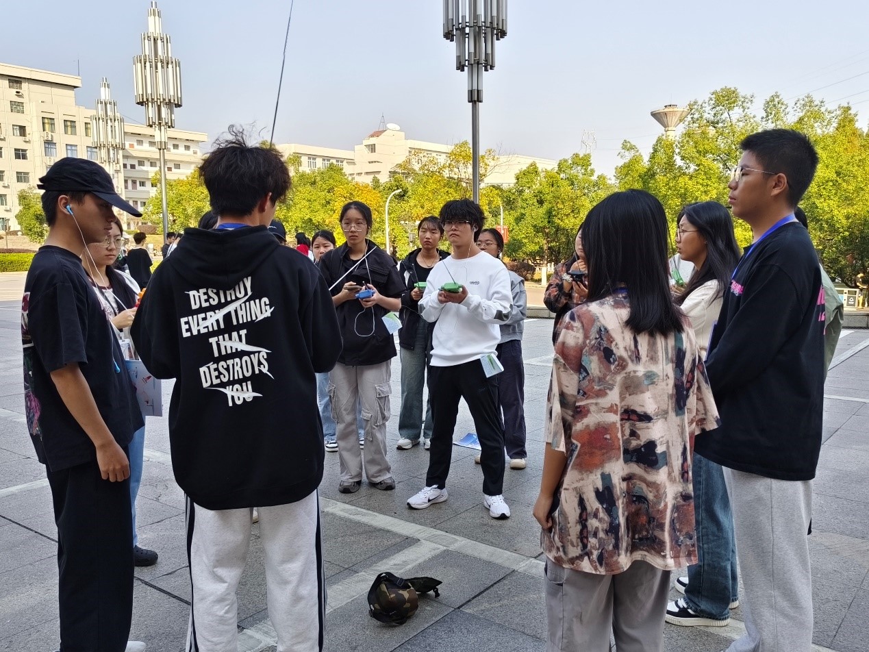 会议第三项:自电院文体部部长和干事带领各队长体验设备。部长干事们将各个队长带到室外,模拟正式比赛时的使用场景,耐心讲解,队长们认真倾听,配合得当。