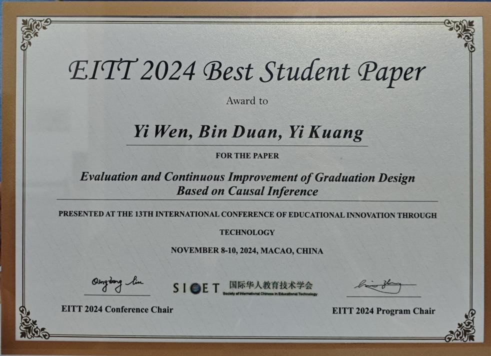 此次获奖不仅展示了团队学生在因果推断领域的科研实力和创新能力,也是对研究团队工作的肯定。未来,研究团队将继续深化相关研究,为智能化教育评估体系建设贡献更多智慧和力量。