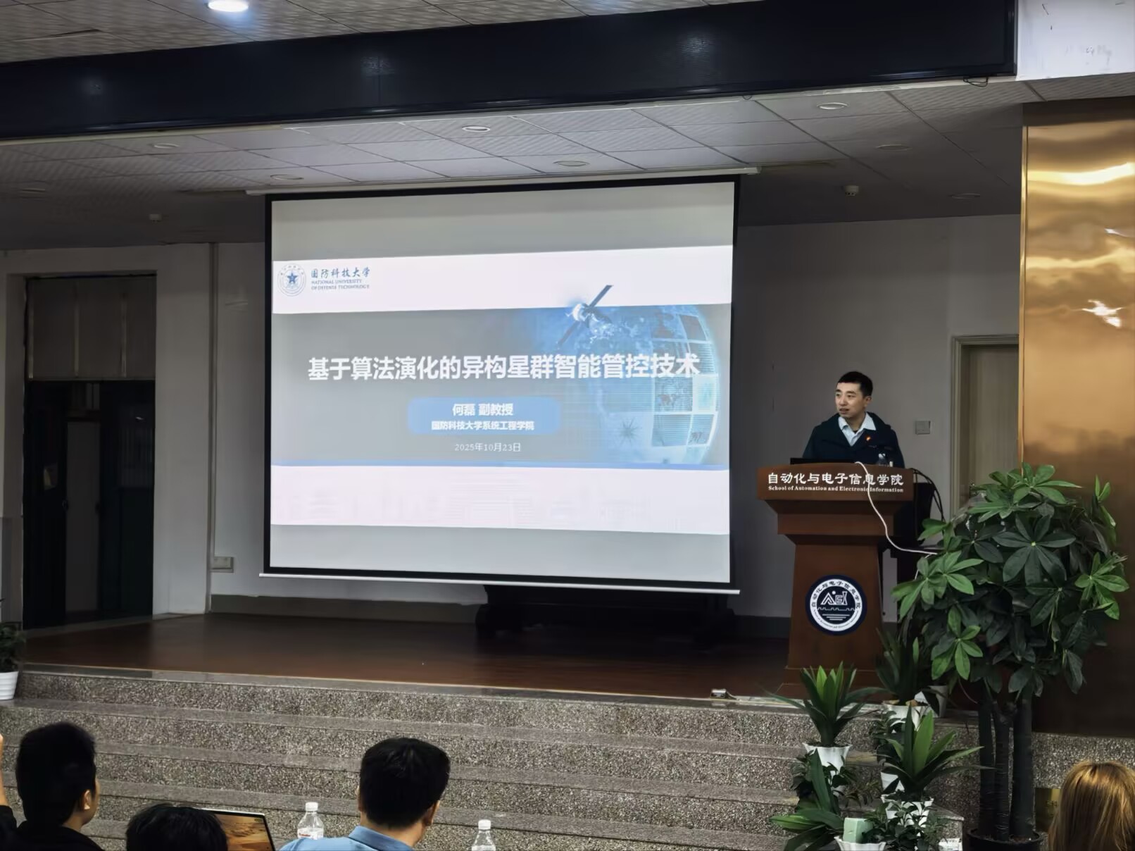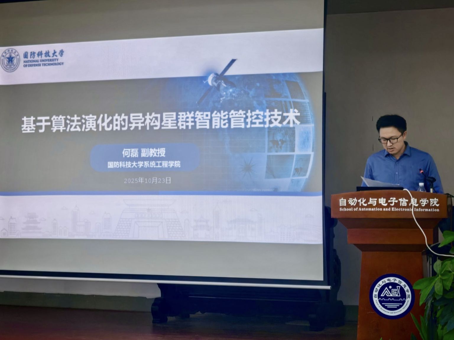 何磊副教授为参会师生作题为“基于算法演化的异构星群智能管控技术”的专题报告,自动化与电子信息啪啪啦