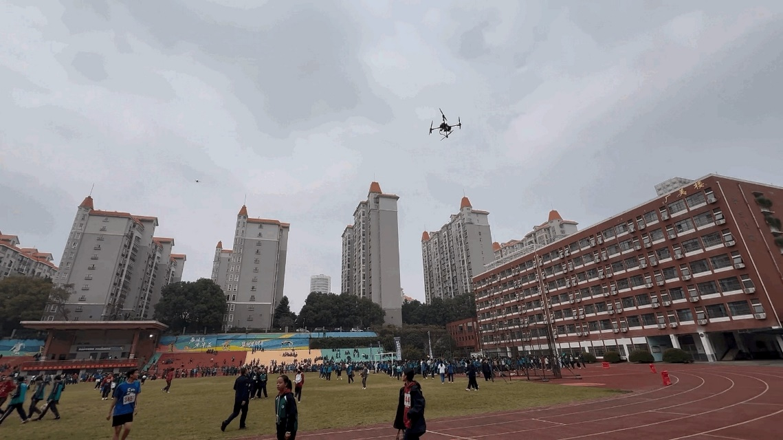 无人机飞行演示将现场气氛推向高潮。无人机在操场上空灵活盘旋、平稳飞行,其精准的控制与稳定的姿态赢得学生们阵阵欢呼。这不仅是一场视觉盛宴,更是一堂生动的科普实践课,激发了同学们对智能感知、自主导航等前沿技术的浓厚兴趣。同时,“安巡卫士”智能巡检机器人也以其创新的设计与实用的功能,吸引了众多学生驻足观看。