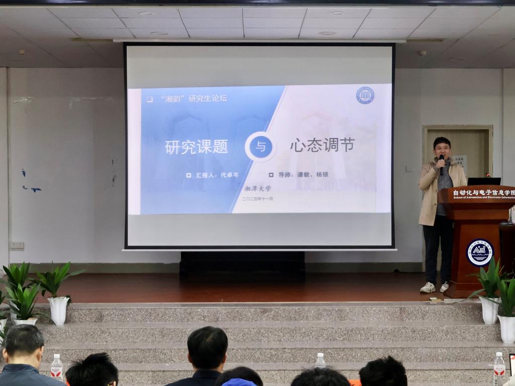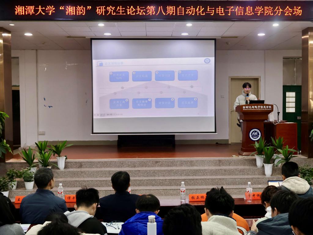“湘韵”研究生论坛—“智控未来,电赋新篇”于工科楼北楼阶梯教室成功举办。此论坛由校院两级研究生组织联合承办,特别邀请数学与计算科学啪啪啦