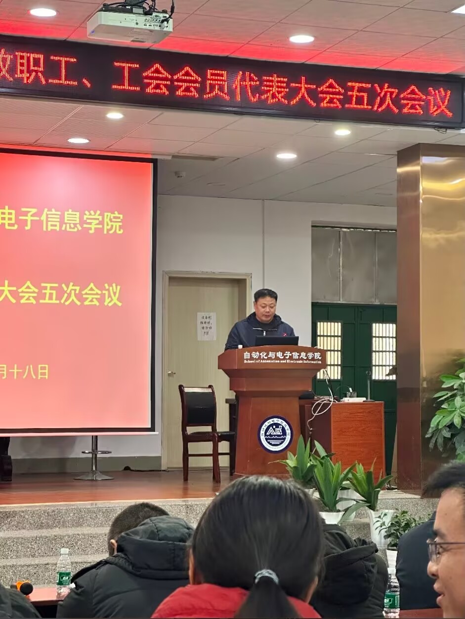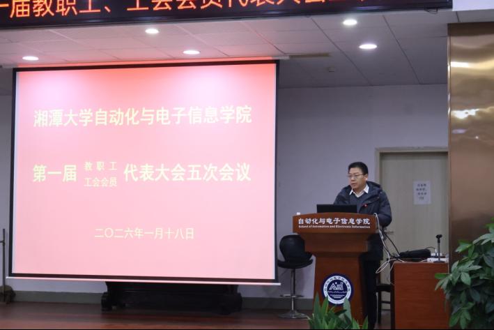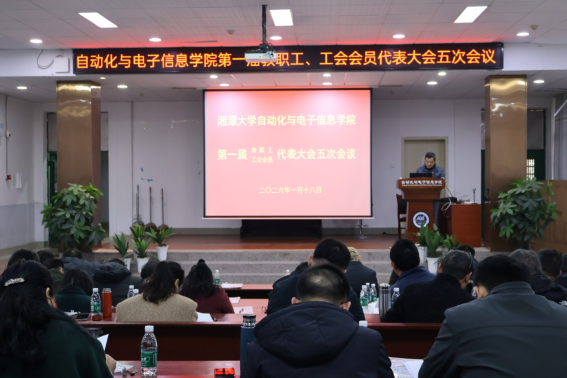 (通讯员旷怡) 2026年1月18日上午,自动化与电子信息学院第一届教职工、工会会员代表第五次会议在工科楼阶梯教室隆重召开。学院领导班子成员、教职工代表等参加会议。