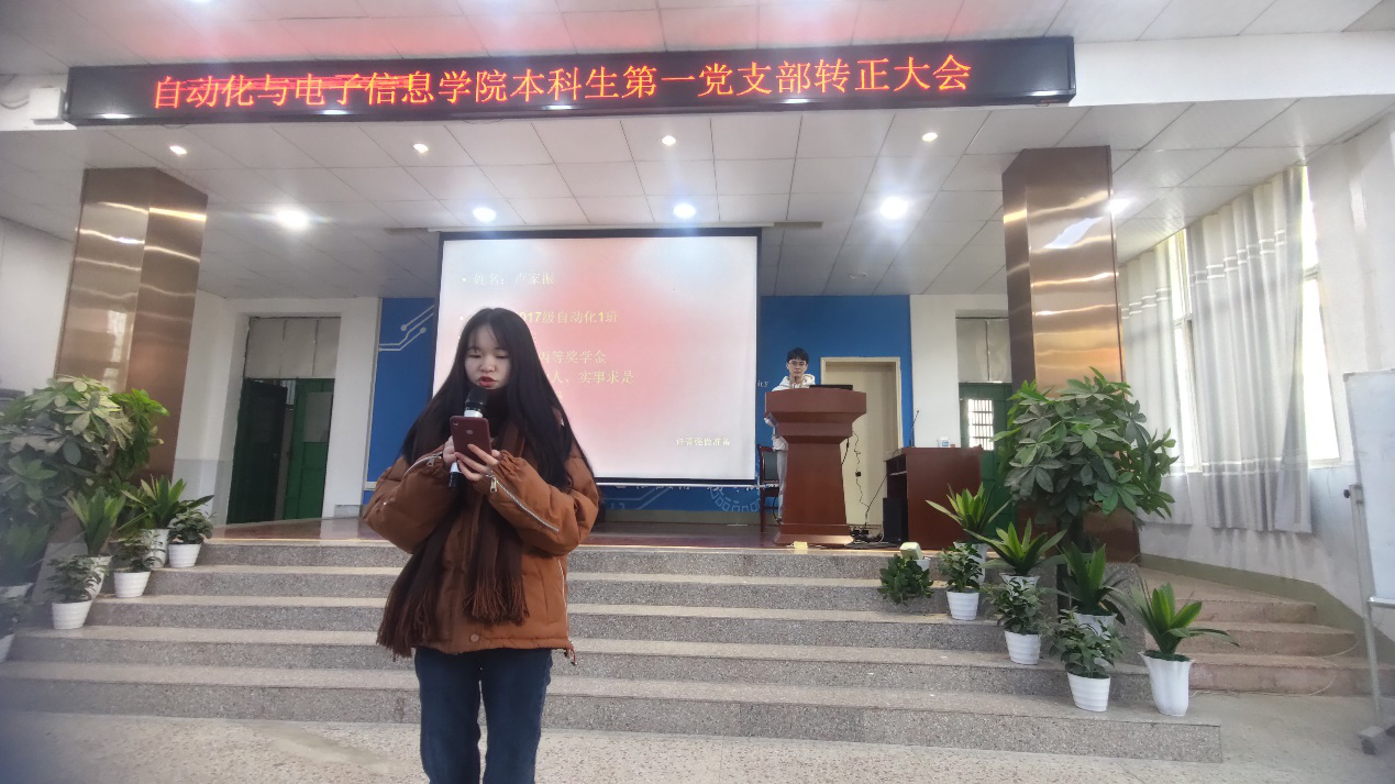 本科生第一党支部在工科楼阶梯教室召开了2020年下半年预备党员转正大会。参加本次转正大会的有支部书记黄春晖老师和全体学生党员,会议由雷翔同志主持。