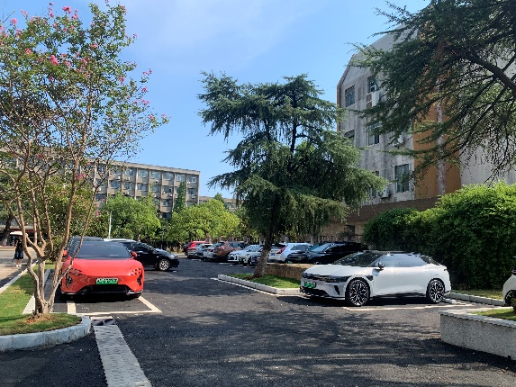 前坪令人耳目一新:整齐的停车位、洁净的地面与错落有致的绿植相互映衬,不仅显著缓解了校园“停车难”问题,满足了师生及访客的停车需求,更极大提升了啪啪啦